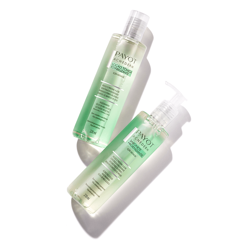 A Loção Tônica Estabilizante Acnederm Payot auxilia na redução da acne e previne a formação de novas espinhas. Possui ação adstringente e refrescante que limpa profundamente e controla a oleosidade ao longo do dia. Não resseca a pele. Sua fórmula enriquecida com Extratos Vegetais, Óleo de Melaleuca e Niacinamida minimiza os poros dilatados, combate a vermelhidão, suaviza as marcas de acne e acalma a pele. Produto livre de parabenos e corantes.